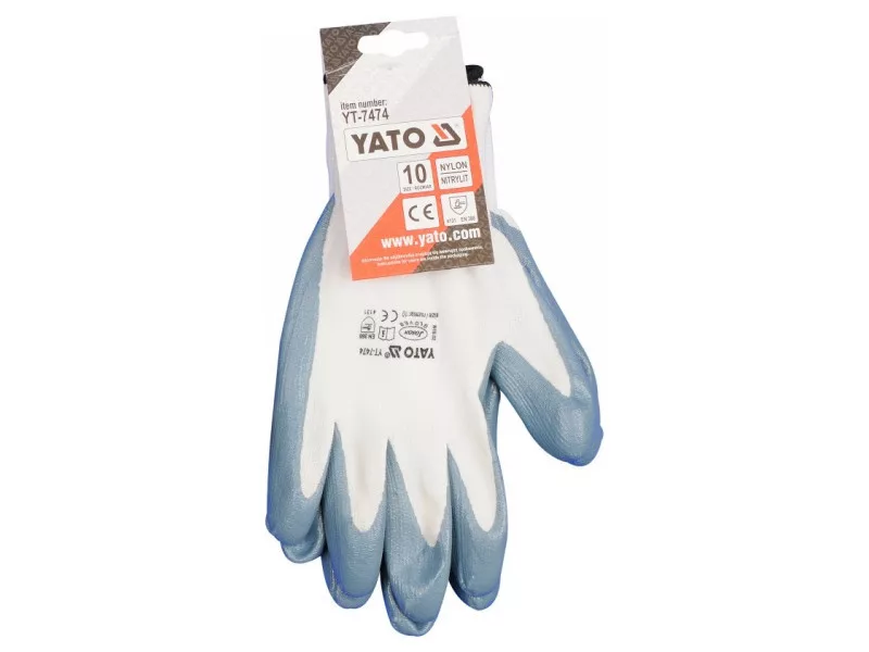Protective work gloves made of white nylon, coated in the gripping part with gray nitrile. A suitably thick layer of coating provides almost the highest resistance to abrasion according to the EN 388 standard. An additional advantage of nitrile is its resistance to gasoline, diesel fuel, paraffin, solvents, greases, etc. The seamless construction made of basic quality nylon guarantees good tear resistance and maintains elasticity for a longer period of time.
