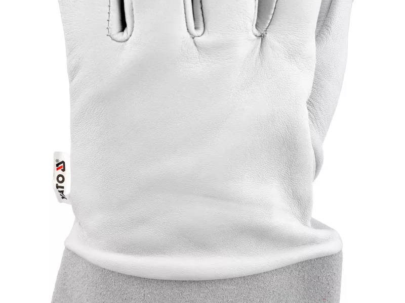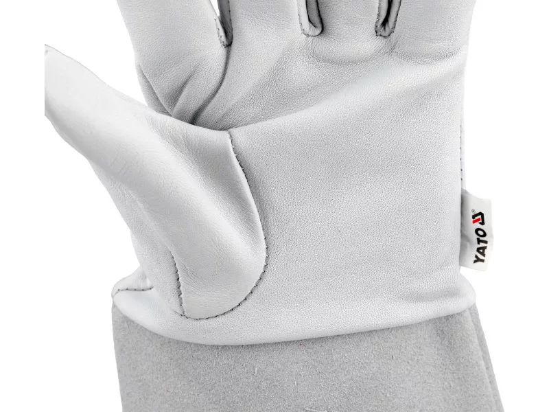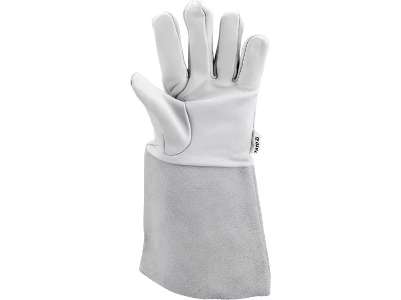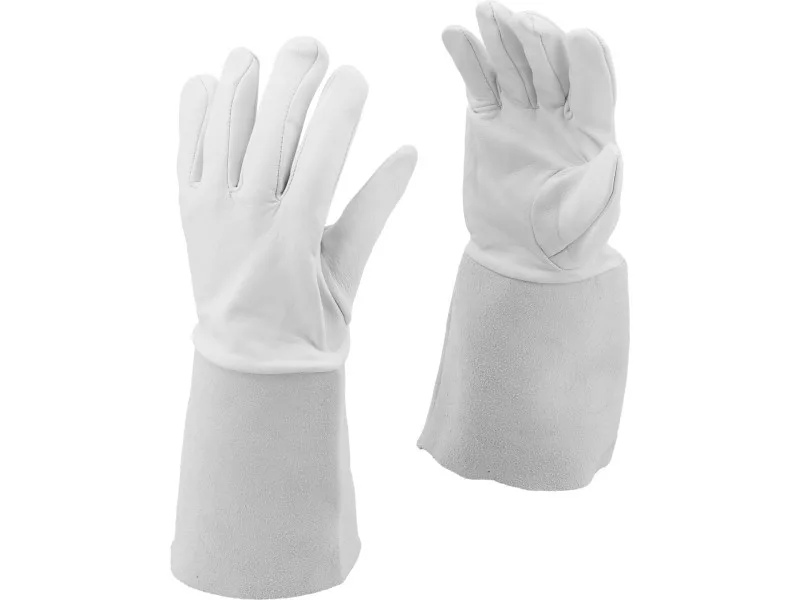 Welding gloves type B. Made of two types of natural leather. Soft grain leather combined with the appropriate material joining technique guarantees significantly greater freedom and dexterity compared to type A gloves. Recommended for TIG welding.