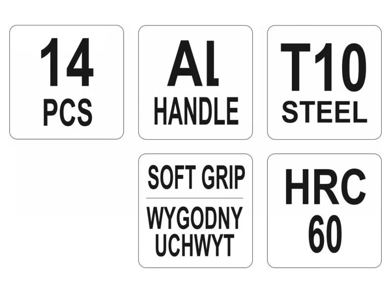 • the set is equipped with 13 blades made of T10 steel. with a very high hardness of HRC 60