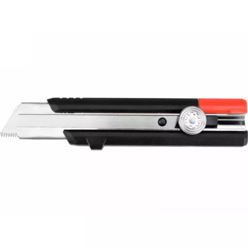 Saw blade knife designed for cutting fibrous materials and plastics, where standard smooth blade has limited effectiveness. The serrated cutting edge made of SK5 steel facilitates starting the cut and reduces tool slippage on the surface. The ABS housing reinforced with TPR rubber improves grip and stability during use.
