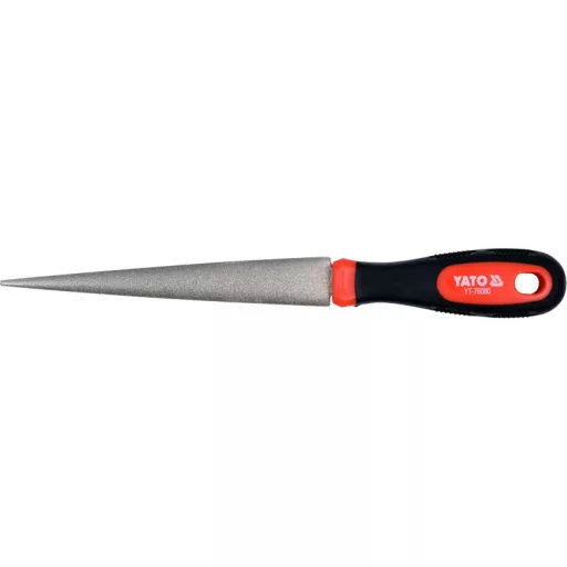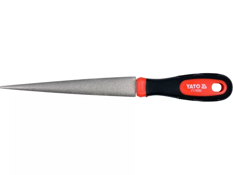 Diamonds in the shape of a file. Half -round, convergent, total length 250 mm, working length 150 mm. It has two 240 and 400 mm granations, a two -component handle. For effectively sharpening knives and scissors and other technical work in industry and crafts.