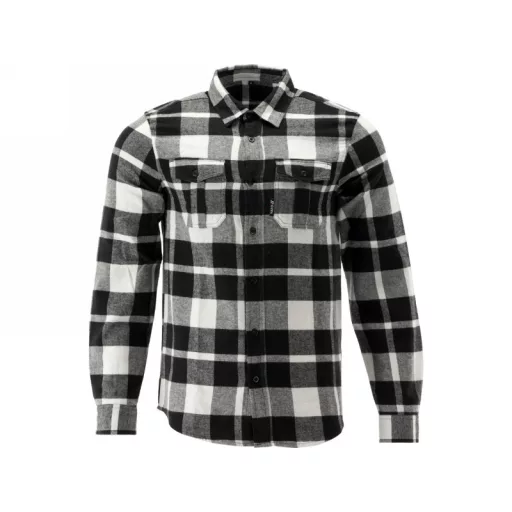 Flannel shirt with two chest pockets in a distinctive check pattern made of 100% cotton with a weight of 170 g/m2. Crease-resistant draped fabric does not cause irritation, is extremely pleasant to the touch, breathes perfectly, shows better thermal properties than a traditional t-shirt of similar weight. Sewing techniques and cut were chosen to emphasize the lightness of the shirt with the skin-pleasing draped fabric. A single seam was used in areas that are not prone to tearing, but which may adversely affect the stiffness of the cut. Double stitching was used in areas exposed to tearing and where the fabric works hardest with our movements. The long joints of the fabric are reliable overlock stitching.