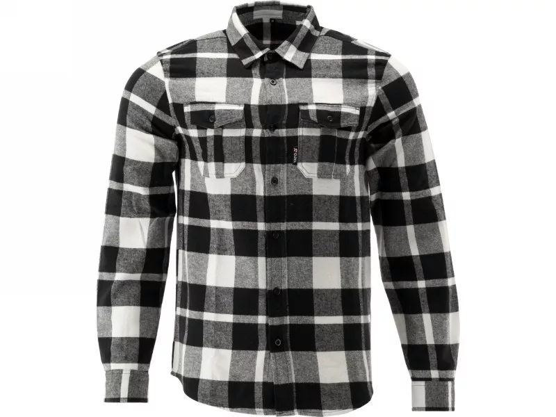Flannel shirt with two chest pockets in a distinctive check pattern made of 100% cotton with a weight of 170 g/m2. Crease-resistant draped fabric does not cause irritation, is extremely pleasant to the touch, breathes perfectly, shows better thermal properties than a traditional t-shirt of similar weight. Sewing techniques and cut were chosen to emphasize the lightness of the shirt with the skin-pleasing draped fabric. A single seam was used in areas that are not prone to tearing, but which may adversely affect the stiffness of the cut. Double stitching was used in areas exposed to tearing and where the fabric works hardest with our movements. The long joints of the fabric are reliable overlock stitching.