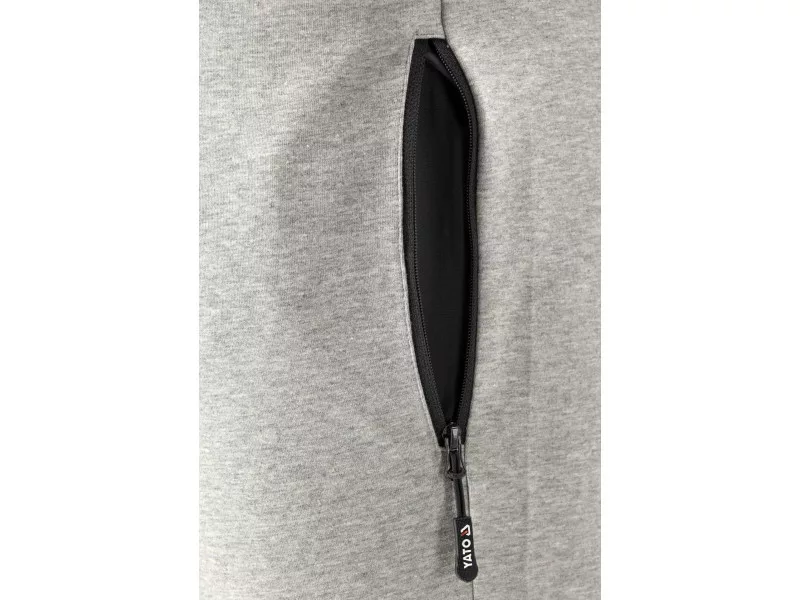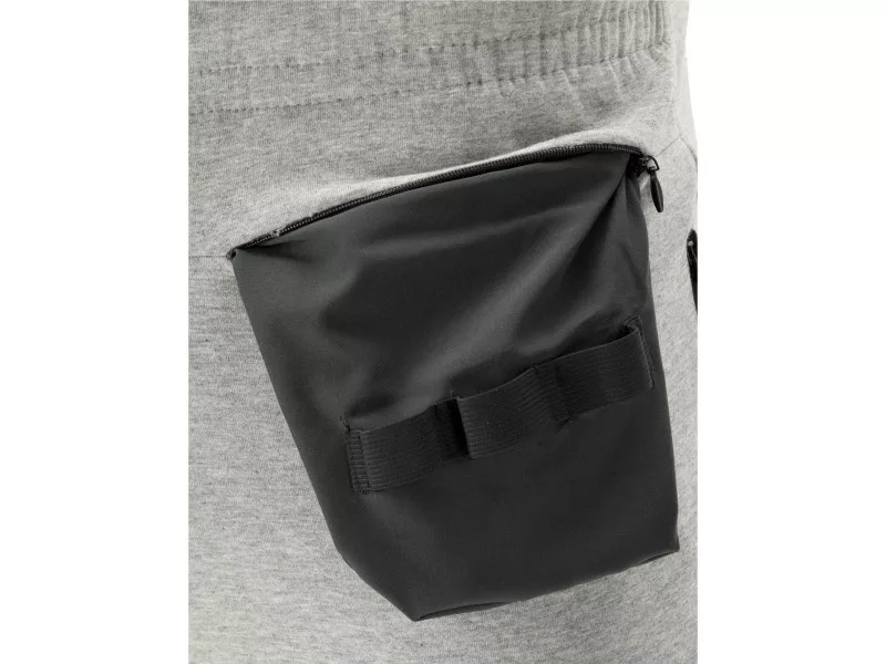 Sweatpants with a high content of elastane and a pleasant lining -like for a satin bedding. As much as 7% of elastane in the composition of the material gives pants a stretch similar to the level of leggings or Lycra sportswear. Four fastened and roomy pockets. The front pockets can be pulled out, then thanks to the loops from the flexible tape, they can be used as assembly pockets. The main material is cotton with polyester and high elastane content. Cotton as a natural material is very well tolerated by the body and is pleasant to the skin. The polyester strengthens the resistance to tearing, and the elastane improves the extension. Basic data Material: 41% cotton, 52% polyester, 7% elastane/spandex weight: 350 g/m² Organization of work on the sides Two capacious pockets with a zip fastener from the front two pockets with a zipper fastener. They can be pulled out, then thanks to the flexible loopes sewn in, additional information can be used as assembly pockets, a wide belt with a string and with rubber tubes on the knees, additional flexible material increasing resistance to abrasions 7 cm wide cuffs at the bottom of the pants. meet the requirements of Regulation (EU) 2016/425 for work clothing and category.