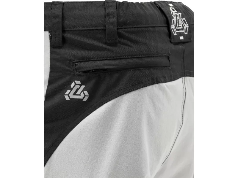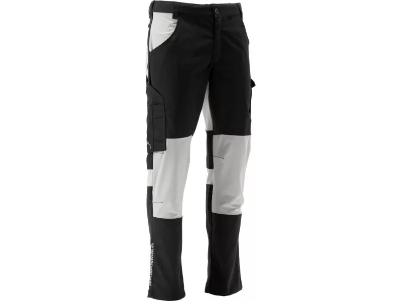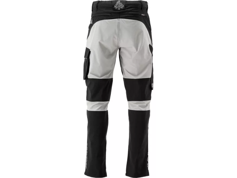 Work pants from the SERWAL series with inserts made of 4way stretch elastic material. Eleven pockets, including a multifunctional pocket with a hidden zipper, perfect for a wallet or phone. The pants can be shortened by about 4 cm using snap buttons. Numerous reinforcements in areas most prone to tearing.