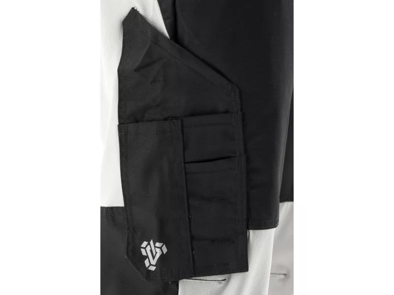 Work trousers from the SERWAL series with inserts made of 4way stretch stretchable material. Eleven pockets, including a multifunctional pocket with a hidden zipper, perfect for a wallet or phone. The trousers can be shortened by about 4 cm using snap buttons. Numerous reinforcements in areas most prone to tearing.