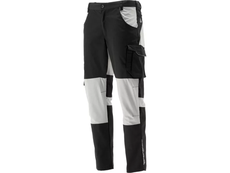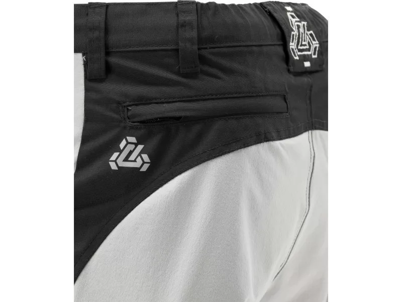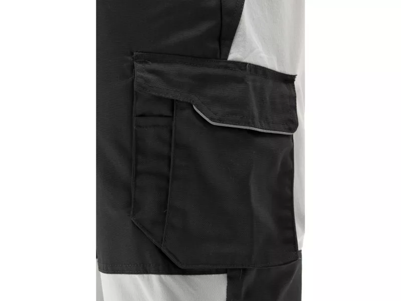 Work pants from the SERWAL series with inserts made of 4way stretch material. Eleven pockets, including a multifunctional pocket with a hidden zipper, perfect for a wallet or phone. The pants can be shortened by about 4 cm with snap buttons. Numerous reinforcements in areas most prone to tearing.