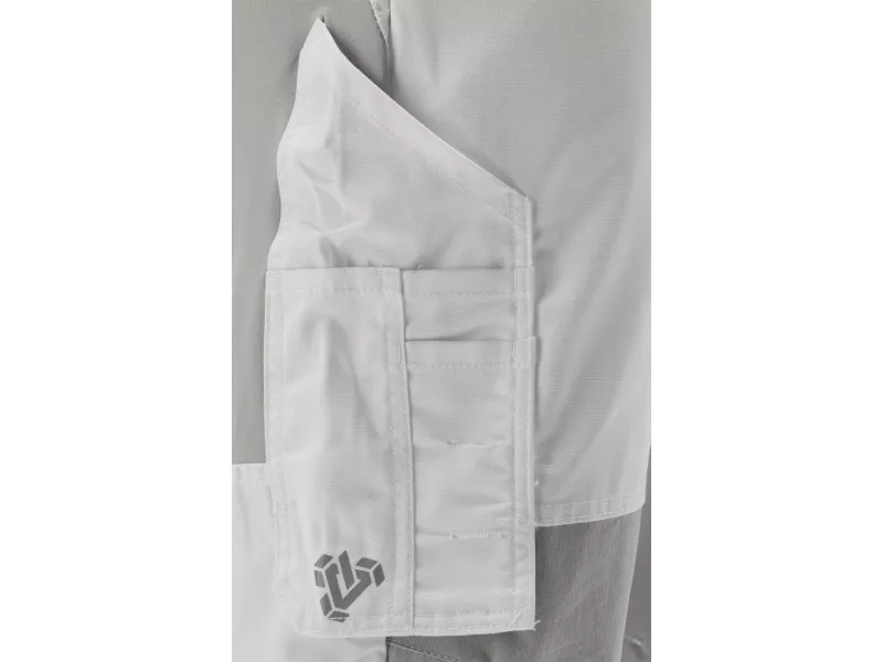 Work trousers from the SERWAL range with inserts in 4way stretch fabric. Eleven pockets, including a multifunctional pocket with a concealed zip, ideal for a wallet or phone. Possibility to shorten the trousers by approximately 4 cm with sewn-in snap buttons. Numerous stitches in the areas most vulnerable to tearing.