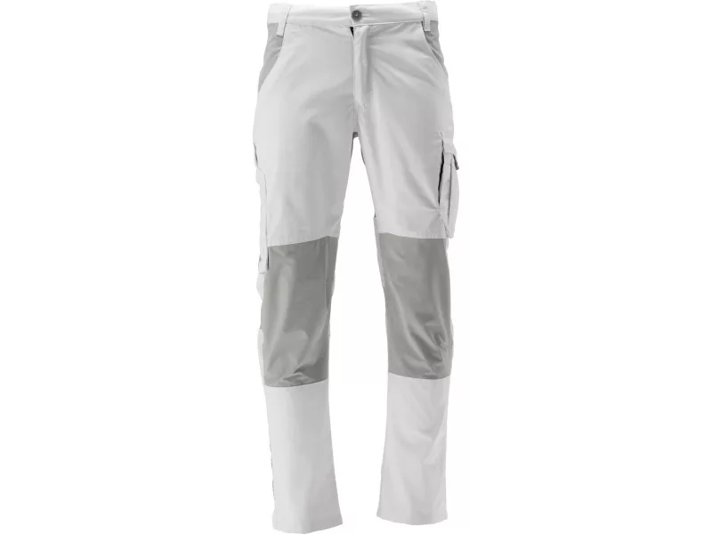 Work trousers from the SERWAL range with inserts in 4way stretch fabric. Eleven pockets, including a multifunctional pocket with a concealed zip, ideal for a wallet or phone. Possibility to shorten the trousers by approximately 4 cm with sewn-in snap buttons. Numerous stitches in the areas most vulnerable to tearing.