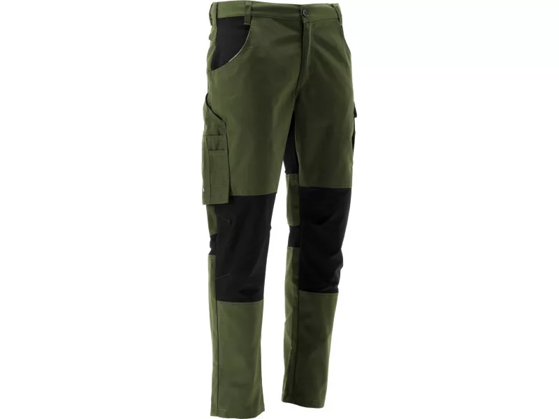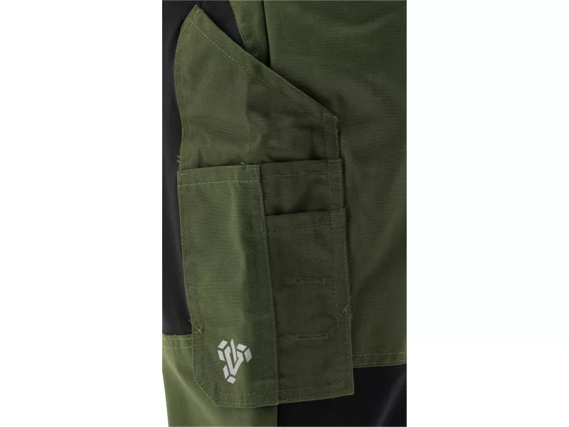 Work trousers from the SERWAL series with 4-way stretch inserts. Eleven pockets, including a multifunctional pocket with a hidden zipper, perfect for a wallet or phone. The trousers can be shortened by approximately 4 cm using the sewn-in snap buttons. Numerous topstitches in areas most prone to tearing.