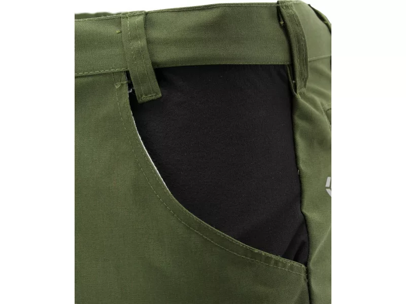 Work trousers from the SERWAL series with 4-way stretch inserts. Eleven pockets, including a multifunctional pocket with a hidden zipper, perfect for a wallet or phone. The trousers can be shortened by approximately 4 cm using the sewn-in snap buttons. Numerous topstitches in areas most prone to tearing.