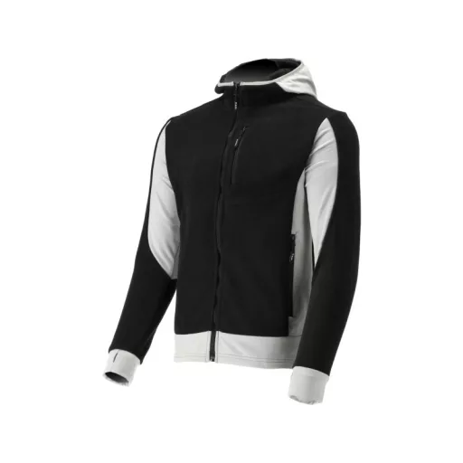 - Stretchy 2-way stretch fabric on the sides, under the arms, and partially on the bottom of the sleeves almost eliminates the discomfort of traditional fleeces during work, e.g. when twisting the torso or working with arms above the head. It also provides better air circulation, reducing sweating, especially under the arms.