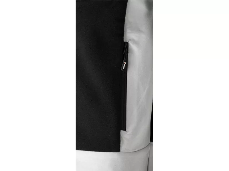- Stretchy 2-way stretch fabric on the sides, under the arms, and partially on the bottom of the sleeves almost eliminates the discomfort of traditional fleeces during work, e.g. when twisting the torso or working with arms above the head. It also provides better air circulation, reducing sweating, especially under the arms.