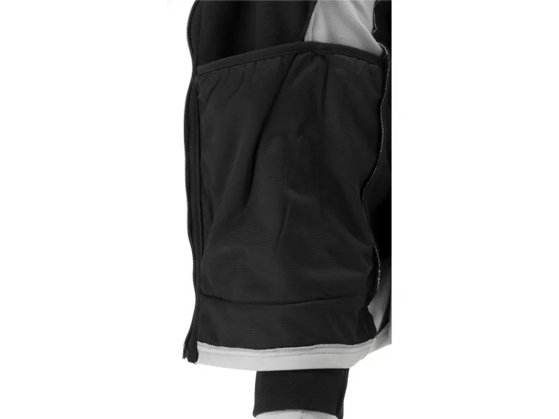 - Stretchy 2-way stretch fabric on the sides, under the arms, and partially on the bottom of the sleeves almost eliminates the discomfort of traditional fleeces during work, e.g. when twisting the torso or working with arms above the head. It also provides better air circulation, reducing sweating, especially under the arms.