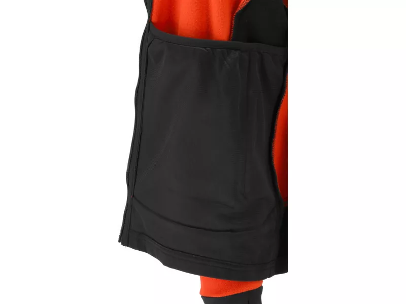 The main material is durable polyester with a characteristic fleece structure, which effectively retains body heat. The insert material is stretchy, breathable 2-way stretch fabric. It does not restrict movement and is pleasant for the skin.
