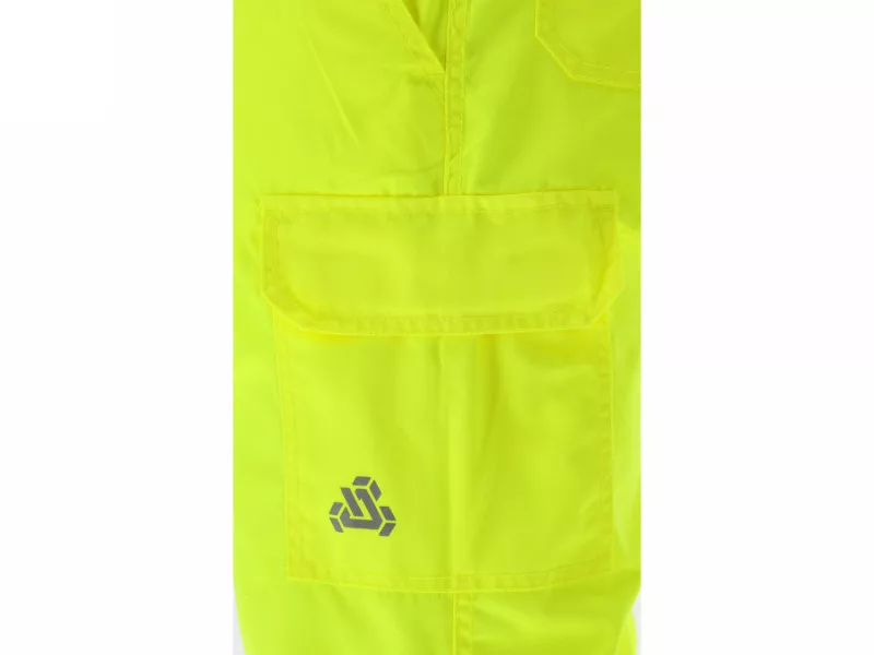Warning certified trousers from the Oriolus series have been designed as functional workwear for applications where the user's visibility is crucial. They are intended for work in areas with vehicle traffic, on roads, construction sites, in logistics, and during infrastructure works, where high-visibility clothing is an essential element of worker protection.