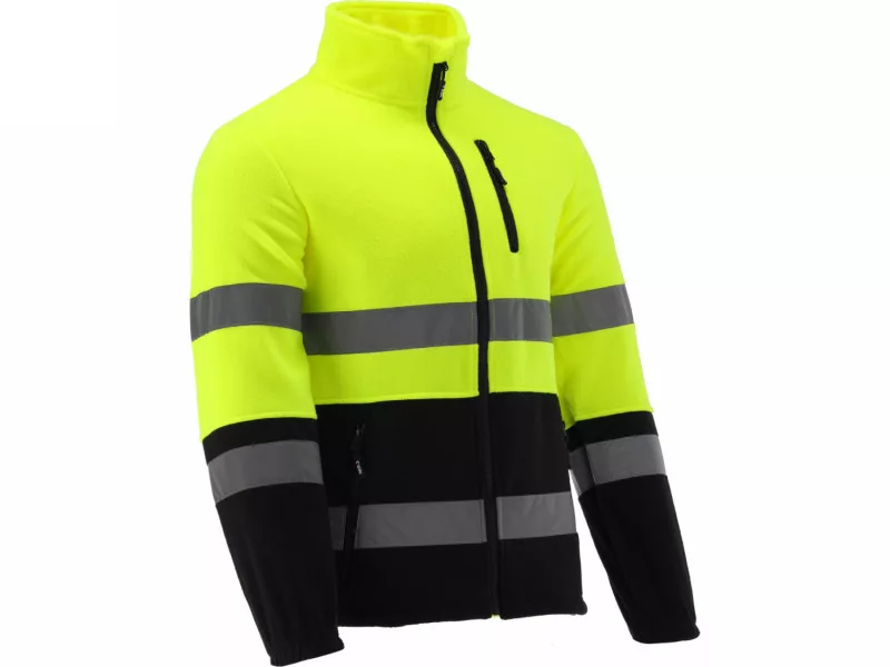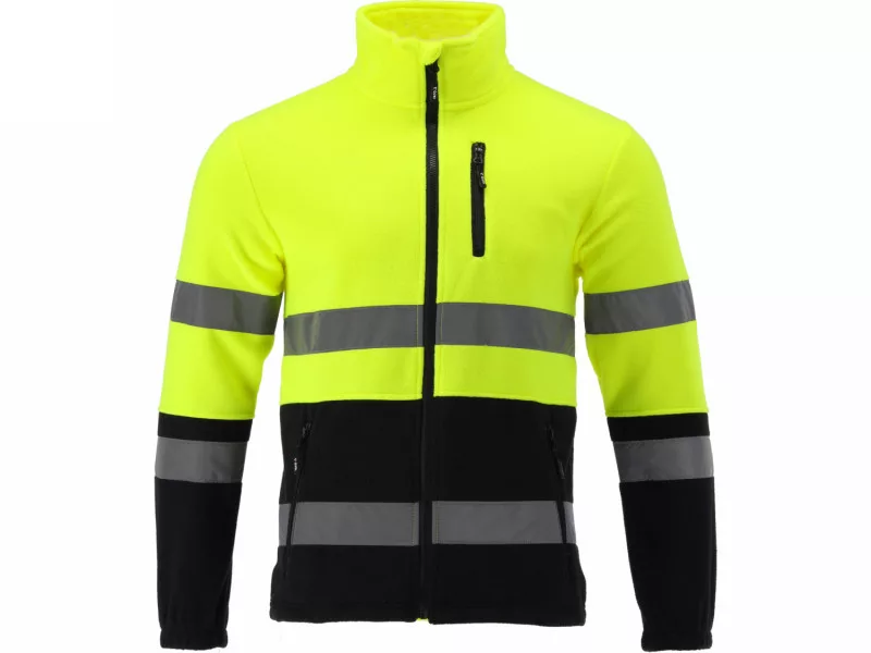 The Oriolus series combines simple, technical styling with solid construction and functional utility solutions. Wide, 50-millimeter reflective stripes improve silhouette recognition in daylight and after dark, increasing work safety in vehicle and machinery traffic zones. The contrast black material below the chest limits visibility of dirt and increases the durability of the polar in areas particularly exposed to intensive use.