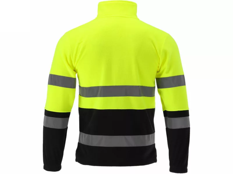 The Oriolus series combines simple, technical styling with solid construction and functional utility solutions. Wide, 50-millimeter reflective stripes improve silhouette recognition in daylight and after dark, increasing work safety in vehicle and machinery traffic zones. The contrast black material below the chest limits visibility of dirt and increases the durability of the polar in areas particularly exposed to intensive use.