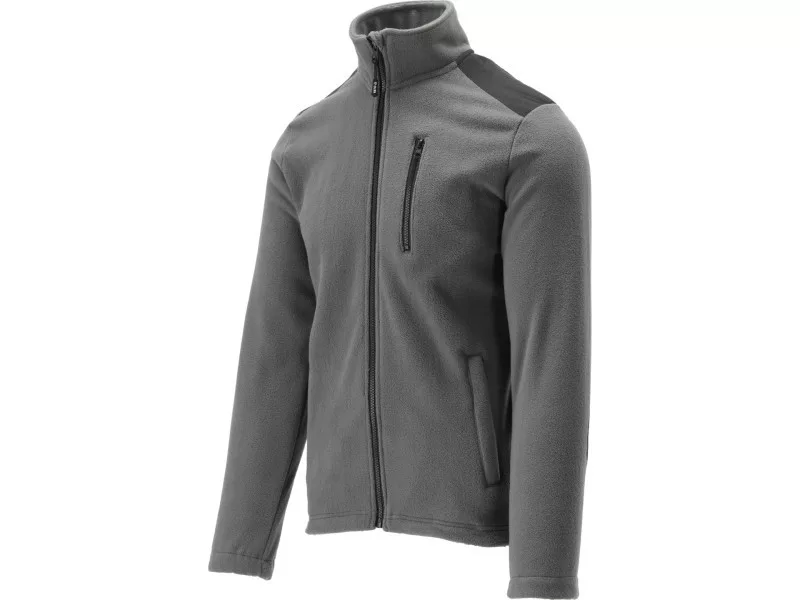 Thick fleece sweatshirt with three pockets and additional reinforcements made of abrasion-resistant fabric on the elbows and shoulders.