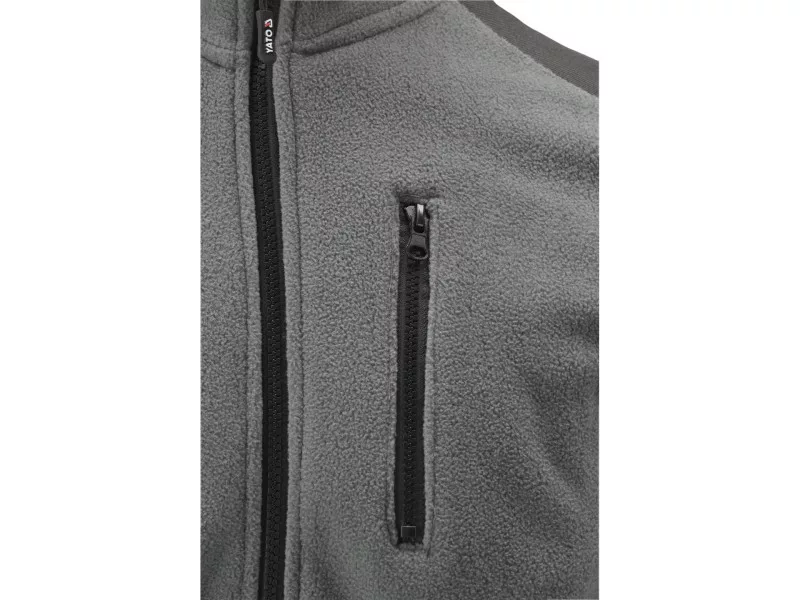 A thick fleece sweatshirt with three pockets and additional fabric hearts resistant to abrasion on elbows and shoulders. The main material is a thick and durable polyester, which effectively maintains the body's warmth, especially on cold days: basic data: material: 100% polyester weight: 420 g/m² work organization: pocket with a zipper on the left breast two pockets with a zipper in the waist area Additional information: Additional fabric -resistant fabric hearings on the elbows and shoulders zipper Fastening sleeves ended with a flexible cuff width adjustment at the bottom of the sweatshirt with a blockage with a blockade meets the requirements of Regulation (EU) 2016/425 for work and category clothing.