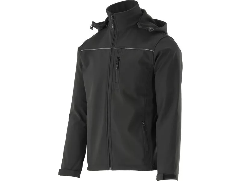 Softshell jacket with three fastened with a waterproof zipper & nbsp; pockets and with a detachable hood. The material is a modern three -layer and light polyester fabric with the addition of spandex with a special structure of microotwars, which block the penetration of water drops inward and at the same time allow sweat evaporation in the form of water vapor outside the material. The jacket perfectly maintains the body's warmth with comfortable air circulation and will successfully replace a heavy sweatshirt with hardly breathable fleece. The middle layer of laminate made of thermoplastic polyurethane will provide water resistance even during moderate rain. Basic data: material: 96% polyester, 4% spandex weight: 320 g/m² work organization: pocket with a waterproof zipper on the left breast two pockets with a waterproof zipper in the area of the waist in the area of the waist. Waterproof 8000 mm (m² of material withstands the pressure of a water pole 8 m high - 8000 mm) breathability 3000 mvp (about 3000 g of water/sweat will evaporate from 1 m² of material outside within 24h) Instant sleeves finished with cuffs with Velcro closure adjustment width at the bottom of the jacket with a blockage with a blockage The combination of comfort of use appreciated by users of ski clothing with the functionality of work clothing meets the requirements of Regulation (EU) 2016/425 for work clothing and category. Water resistance: The parameter so far most often used in ski clothing expresses the resistance of the m² of material to the pressure of a millimeter of water pole. 0 - 1500 mm - almost zero water resistance, work in dry conditions 1500 - 5000 mm - water resistance for light rain and delicate snow 5000 - 10,000 mm - water resistance for moderate rain and snow 10,000 - 15000 mm - water resistance to heavy rain and snow without a large wind Breathability: In other words, a couple of permeability means the ability of the material to lead sweat in the form of steam outside the material. The higher the parameter, the more effective the air circulation. Values between 2000 - 5000 MVP are a compromise between maintaining body warmth and the comfort of working in moderate physical activity, e.g. when working at a construction site.