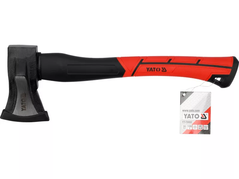 A splitting axe with a wedge for professional use and everyday use in a household. Thanks to a well-profiled blade, it effectively chops and splits wood. The durable blade is made of hardened C45 steel, hot-forged. With a hardness of 48-58 HRC, the axe is characterized by high resistance to wear and effectiveness even when chopping hard wood. The handle of the axe is made of fiberglass reinforced with plastic, which increases its durability and resistance to damage. The handle is coated with a TPR coating, which stabilizes the grip and improves work comfort, reducing fatigue even during prolonged use.