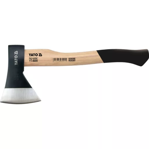Shakes made of carbon steel, sanded surface. Mettered on a handle made of hikor sleepless wood. The species of this wood is valued for flexibility and hardness, strength and fracture resistance. The connection of the Obucha with the handle is secured with a large wooden wedge and a steel ring wedge. Weight 1600 g, handle length 81 cm.