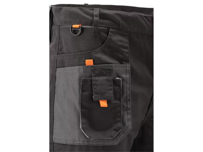 Working pants with nine pockets, including six with a Velcro fastener and special pockets for nutrients. The main material is a mixture of cotton with polyester in the right proportions. This solution allows you to use the strengths of both materials, including Increased tear resistance and good air circulation. Triple seams were used for connections of the material in the most exposed places to tear. Basic data: material: 35% cotton, 65% polyester weight: 267 g/m² work organization: below the belt at the front multi-function pockets, including two main pockets, two sewn pockets with a Velcro fastener with material with material with reinforced resistance to abrasion and an additional sewn pocket with a flap fastened with Velcro on the left leg, a large pocket with a flap, fastened with Velcro on the left leg sewn in a textile loop, e.g. on a hammer on the right leg, a narrow pocket made of material with reinforced resistance to abrasion, e.g. on a wallpaper knife On the back below the waist, two large pockets with a flap, fastened with Velcro, half -trimmed with material with reinforced resistance to abrasion at the waist at the front of the eyelabist with keys at the back of the belt at the back of the Velcro loop, e.g. on a rolled cable From fabric resistant to abrasion for penetrational inserts, e.g. 74595 Additional information: triple seams in places exposed to tear, fastened with zipper and button in the belt adjustment width width at the waist with buttons meet the requirements of regulation (EU) 2016/425 for work clothing 1st category.