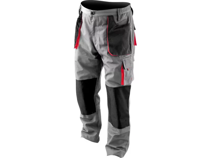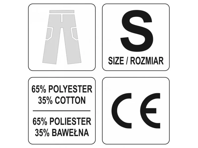 Working pants with five pockets, including three with a Velcro fastening and special pockets for penetrates. The main material is a mixture of cotton with polyester in the right proportions. This solution allows you to use the strengths of both materials, including Increased tear resistance and good air circulation. Triple seams were used for connections of the material in the most exposed places to tear. Basic data: material: 35% cotton, 65% polyester weight: 240 g/m² work organization: below belt at the front two pockets made of material with reinforced resistance to abrasion on the left leg large pocket with a flap, fastened with Velcro below the waist below the waist two belt two Large pockets with a flap, fastened with Velcro, made of material with reinforced resistance to abrasion at the front of the front eyebone with keys at the back of the belt at the back Intended for nonsense inserts, e.g. 74595 Additional information: Triple seams in places exposed to tear, fastened with a zipper and button in the waist adjustment width with waist width with buttons in the waist on the waist on the sides. Sewn tight gum meets the requirements of regulation (EU) 2016/425 for clothing working and category. & nbsp;