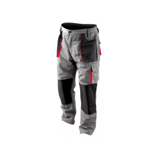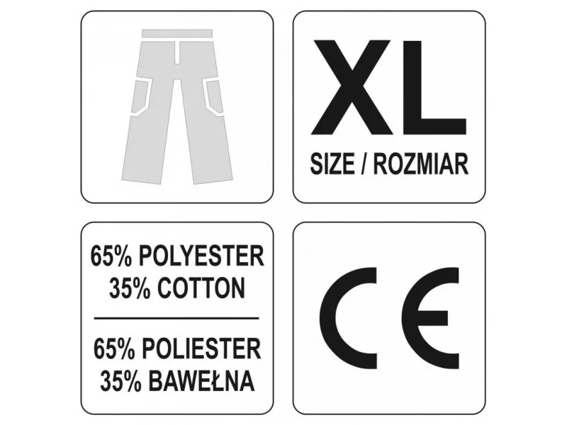Working pants with five pockets, including three with a Velcro fastening and special pockets for penetrates. The main material is a mixture of cotton with polyester in the right proportions. This solution allows you to use the strengths of both materials, including Increased tear resistance and good air circulation. Triple seams were used for connections of the material in the most exposed places to tear. Basic data: material: 35% cotton, 65% polyester weight: 240 g/m² work organization: below belt at the front two pockets made of material with reinforced resistance to abrasion on the left leg large pocket with a flap, fastened with Velcro below the waist below the waist two belt two Large pockets with a flap, fastened with Velcro, made of material with reinforced resistance to abrasion at the front of the front eyebone with keys at the back of the belt at the back Intended for nonsense inserts, e.g. 74595 Additional information: Triple seams in places exposed to tear, fastened with a zipper and button in the waist adjustment width with waist width with buttons in the waist on the waist on the sides. Sewn tight gum meets the requirements of regulation (EU) 2016/425 for clothing working and category. & nbsp;