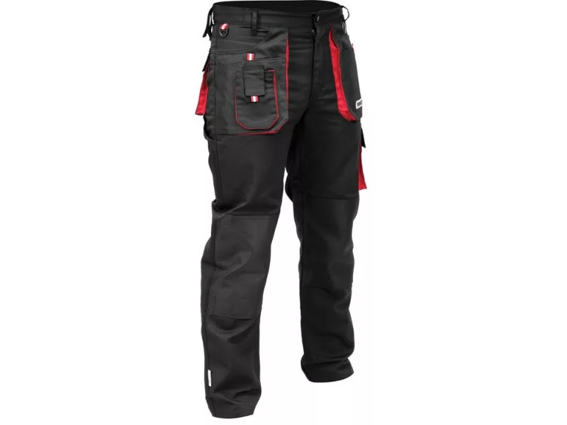 Work pants with nine pockets, including six with Velcro closure and special pockets for knee pads.