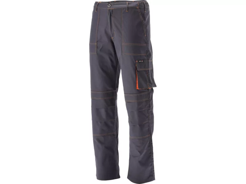 Working pants with five pockets, including two with a Velcro fastener and special pockets for penetrates. The main material is a mixture of cotton with polyester in the right proportions. This solution allows you to use the strengths of both materials, including Increased tear resistance and good air circulation. Basic data: material: 35% cotton, 65% polyester weight: 245 g/m² work organization: below the belt at the front two main pockets with reinforced bottom from the inside with an additional layer of material on the left leg large pocket with a flap, fastened with Velcro on the right leg Narrow pocket, e.g. for a wallpaper knife on the back below the waist, a large pocket with a flap, fastened with Velcro at the waist at the front eye for a carabiner with keys on the knees pockets for the destiny for nutrient inserts, e.g. 74595 Additional information: double seams in places exposed to Trushing of the fly fastened with a zipper and a large button at the waist on the waist on the sides sewn -in astray rubber meet the requirements of Regulation (EU) 2016/425 for work and category clothing.