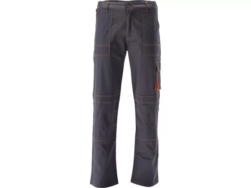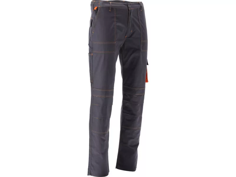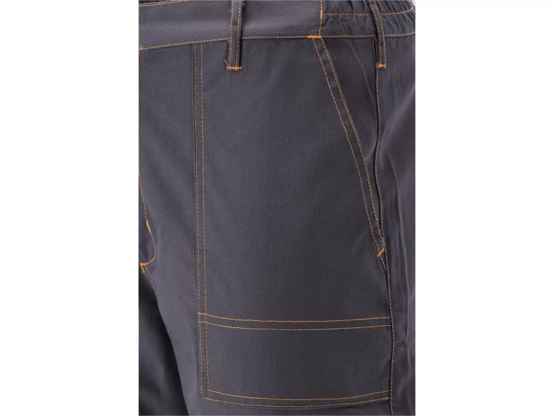 Working pants with five pockets, including two with a Velcro fastener and special pockets for penetrates. The main material is a mixture of cotton with polyester in the right proportions. This solution allows you to use the strengths of both materials, including Increased tear resistance and good air circulation. Basic data: material: 35% cotton, 65% polyester weight: 245 g/m² work organization: below the belt at the front two main pockets with reinforced bottom from the inside with an additional layer of material on the left leg large pocket with a flap, fastened with Velcro on the right leg Narrow pocket, e.g. for a wallpaper knife on the back below the waist, a large pocket with a flap, fastened with Velcro at the waist at the front eye for a carabiner with keys on the knees pockets for the destiny for nutrient inserts, e.g. 74595 Additional information: double seams in places exposed to Trushing of the fly fastened with a zipper and a large button at the waist on the waist on the sides sewn -in astray rubber meet the requirements of Regulation (EU) 2016/425 for work and category clothing.