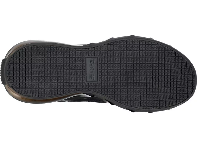 Innovative three-material sole. The outer, semi-transparent part made of TPU not only has aesthetic value but also functions as an air cushion around almost the entire perimeter. It guarantees increased comfort while working in non-standard positions. The inner part made of responsive EVA foam fully supports the foot and effectively absorbs vibrations. The slip-resistant tread made of rubber improves stability on surfaces covered with detergents as well as oily substances, confirmed by the receipt of the SR certification. Enhanced user comfort is complemented by an innovative popcorn design insole.