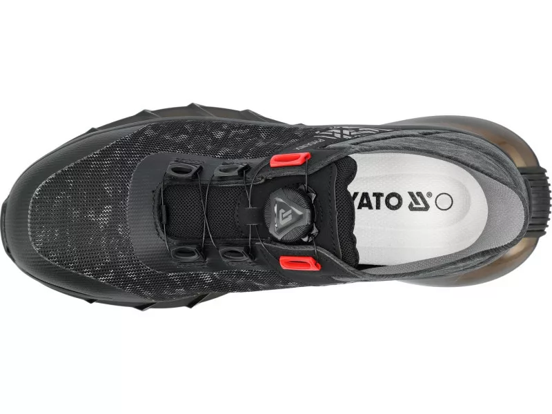 Innovative three-material outsole. The outer, semi-transparent part made of TPU not only has aesthetic qualities but also serves as an air cushion around almost the entire perimeter. It guarantees increased comfort while working in non-standard positions. The inner part made of responsive ETPU supports the foot entirely and excellently absorbs vibrations. The slip-resistant tread made of rubber improves stability on surfaces covered with detergents as well as oily substances, which is confirmed by receiving the SR certification. Enhanced user comfort is complemented by an innovative popcorn design insole.