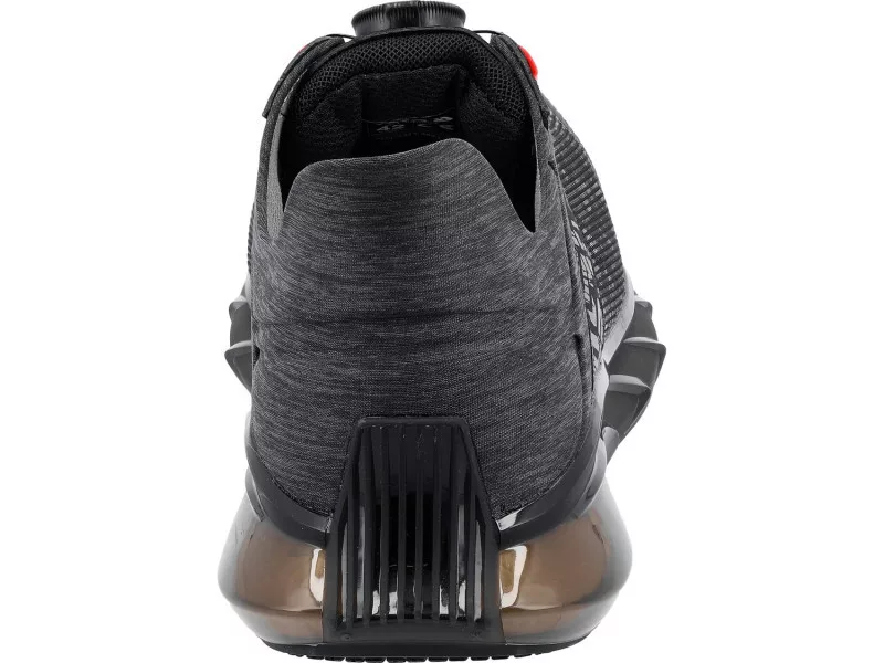 Innovative three-material outsole. The outer, semi-transparent part made of TPU not only has aesthetic qualities but also serves as an air cushion around almost the entire perimeter. It guarantees increased comfort while working in non-standard positions. The inner part made of responsive ETPU supports the foot entirely and excellently absorbs vibrations. The slip-resistant tread made of rubber improves stability on surfaces covered with detergents as well as oily substances, which is confirmed by receiving the SR certification. Enhanced user comfort is complemented by an innovative popcorn design insole.
