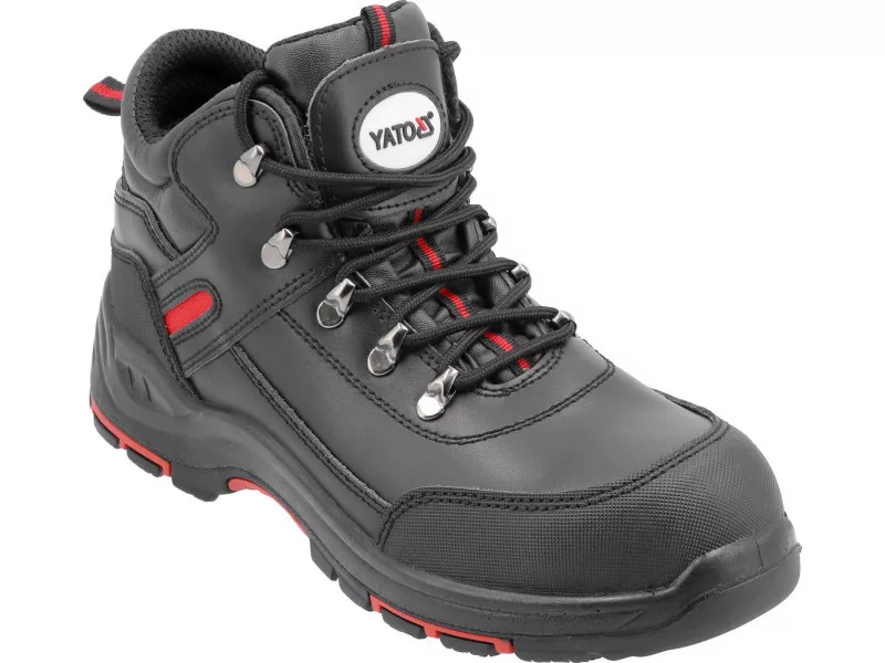 The PARAN S3 series of lightweight work boots is a model with an impact-resistant composite toecap, a flexible anti-puncture insole. The sole is dual-material with a non-slip rubber tread with special cuts and inserts made of durable PU in red. Among other things, the shoes offer increased walking comfort thanks to an insole that adjusts to the foot.