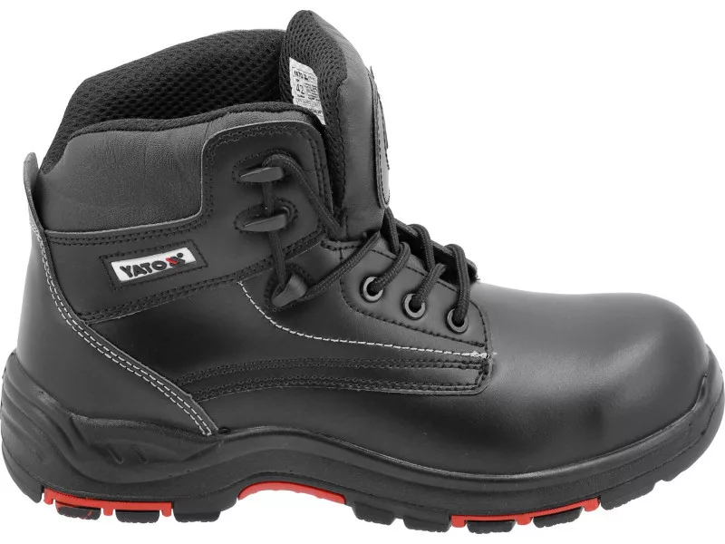 The lightweight work boots from the TARAN S3 series are a model with an impact-resistant composite toecap, a flexible anti-puncture insert and a two-material sole with a non-slip rubber tread with special cuts and inserts made of durable PU in red. Among other things, the shoes offer increased walking comfort thanks to an insole that adjusts to the foot.