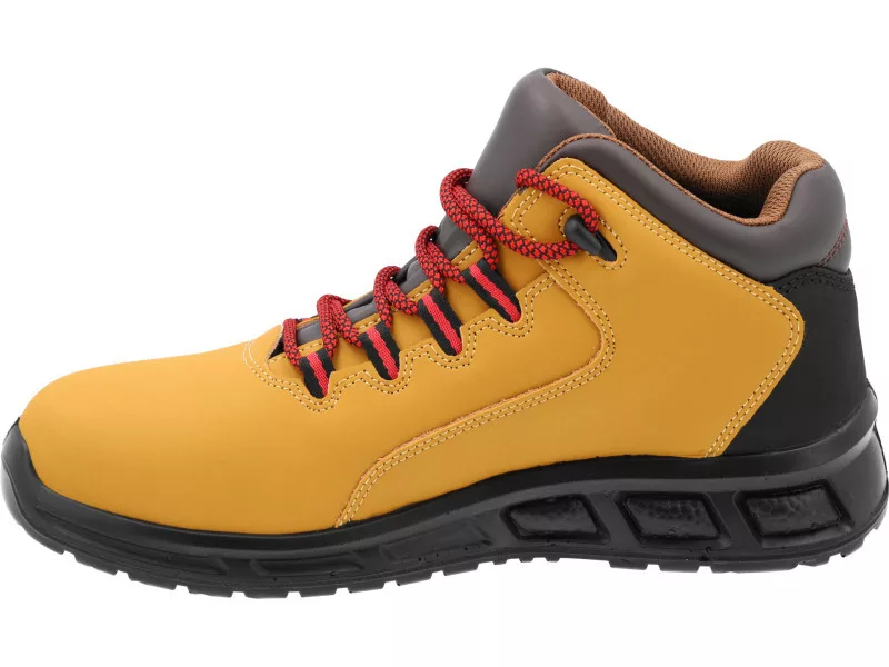 The upper made of high-quality natural leather and special inserts at the tongue strongly reduce water permeation and absorption. The certified insole and the plastic anti-tip insole are lighter than their steel counterparts. The insole is flexible and does not restrict midfoot flexion.