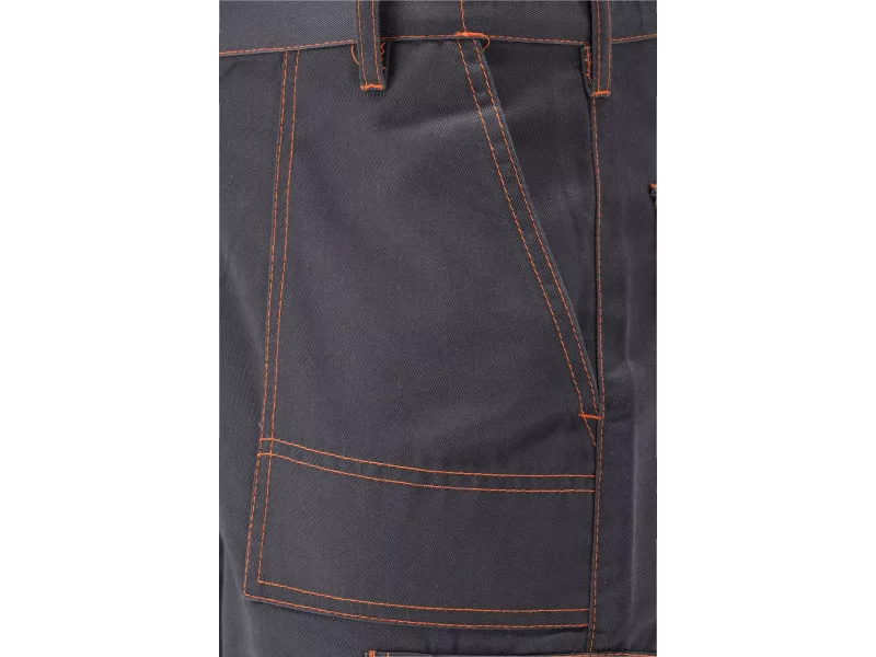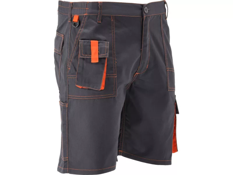 Short work pants with seven pockets, including four with a Velcro fastener. The main material is a mixture of cotton with polyester in the right proportions. This solution allows you to use the strengths of both materials, including Increased tear resistance and good air circulation. Basic data: material: 35% cotton, 65% polyester weight: 245 g/m² work organization: below the belt on the front two large pockets with a reinforced bottom on the inside with an additional layer of material and on the right side a small sewn pocket with a flap fastened with a Velcro on the left Leg a large pocket with a flap, a Velcro on the right leg, a narrow pocket, e.g. for a wallpaper knife & nbsp; On the back below the waist, two large pockets with a flap, Velcro fastened at the waist at the front, a carabiner with keys Additional information: double seams in places exposed to tear, fastened with a zipper and a large button at the waist on the waist on the sides, sewn Regulation (EU) 2016/425 for work clothing and category.