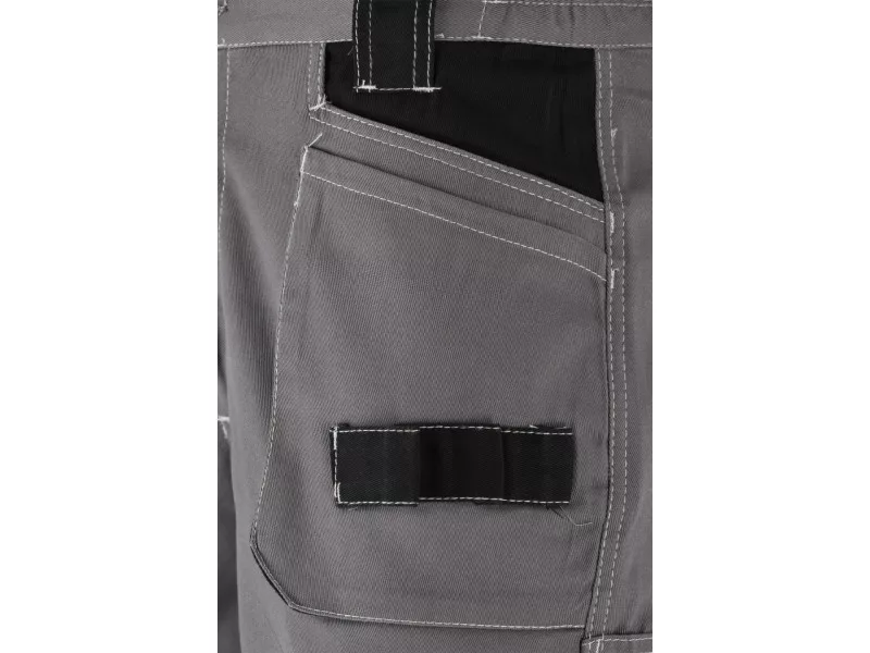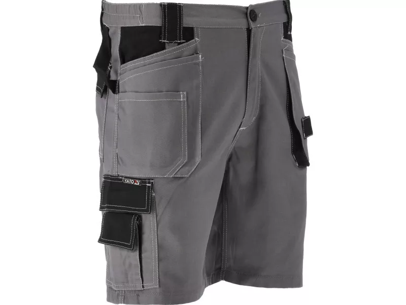 Short work trousers with ten pockets, including four with Velcro closures and numerous textile loops for essential tools.