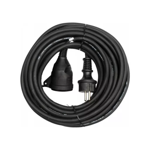 High-quality insulated extension cord with a length of 20 m. The wire is made of 3 copper conductors of 1.5 mm² each. Such a wire cross-section makes it possible to connect to these extension cords equipment often used on the construction site, in the workshop or manufacturing plant.