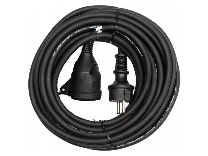 The cables are covered with insulation made of natural rubber H05RR-F, which characterized by high resistance to mechanical damage, atmospheric factors, chemical substances (cutting oils, gasoline, or ethyl, methyl alcohols). Such insulation provides a voltage rating of 300V / 500V. In addition, the extender is made according to IP 44 standard.