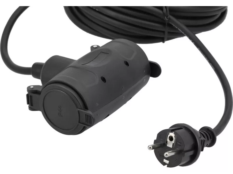 Three-wire extension cord with double IP44 type "F" socket and flooded IP44 type "E" and "F"