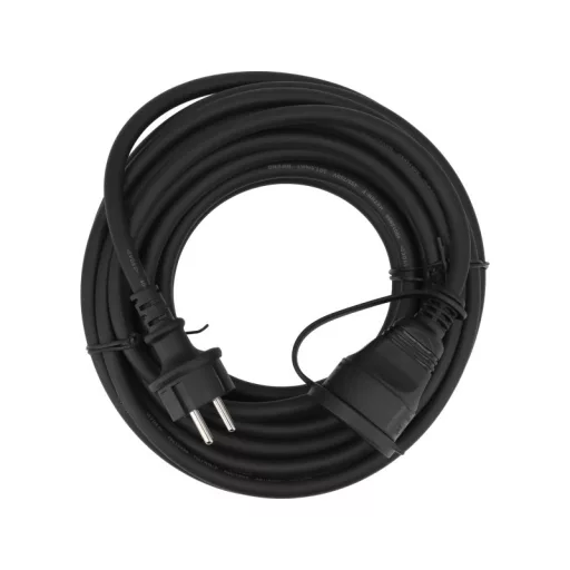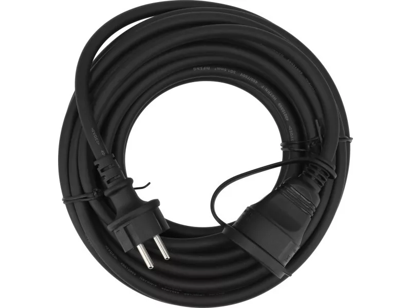 Construction and workshop extension cable with dust and splash-proof socket. The increased diameter chlorinated polyethylene (CPE) sheathed cable will work well both indoors and outdoors. It is resistant to oils, acids, most solvents and sunlight. It does not stiffen in the cold. Does not spread fire. It is characterised by high resistance to ageing. The increased diameter of the insulation improves puncture resistance parameters and increases resistance to mechanical damage.
