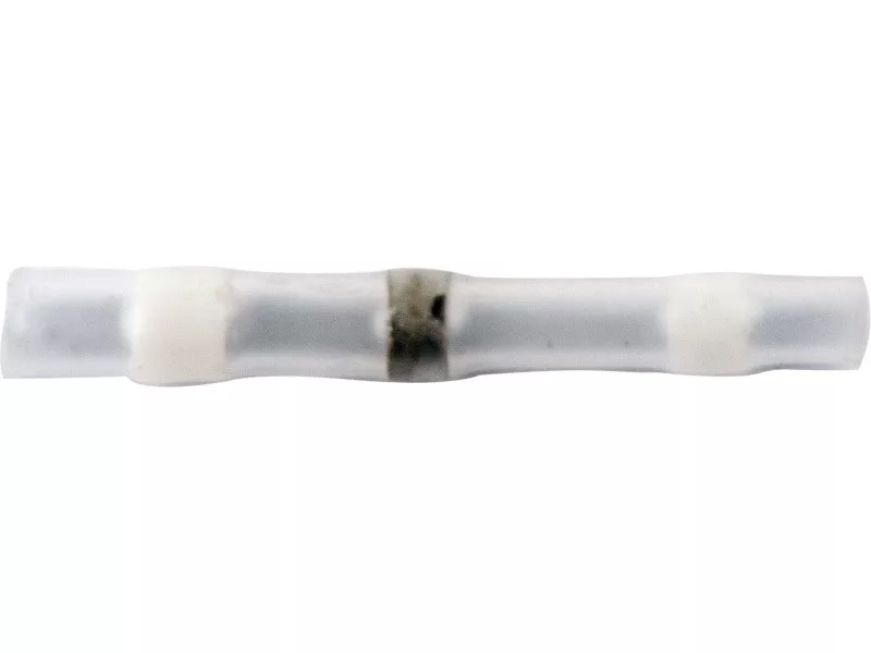 Transparent YT-81440 heat shrink tubing with a ring of tin in the center and two rings of thermal glue on the sides to further seal the connection.