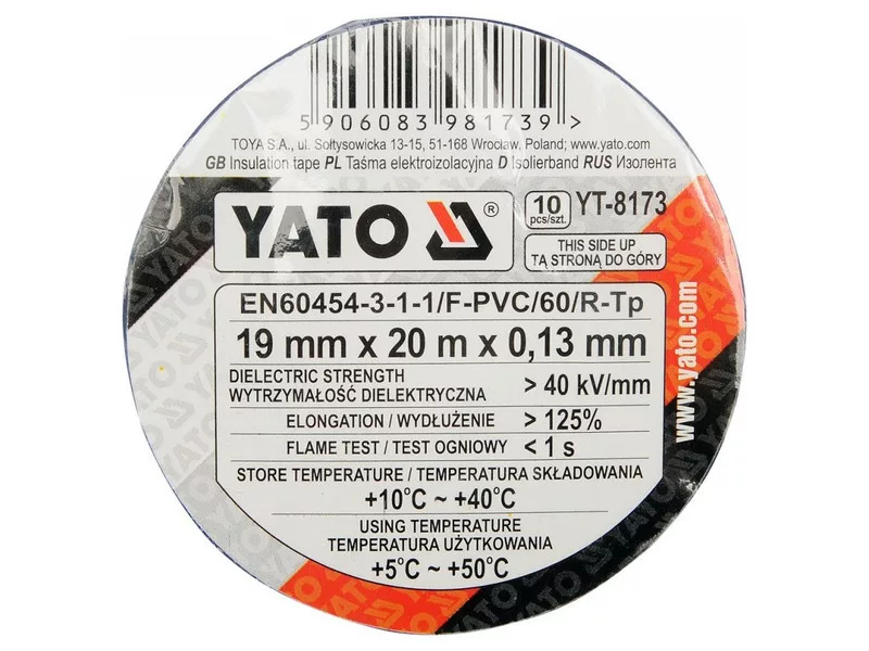 Discover the professional set of electrical insulation tapes YT-8173, which will ensure the reliability and safety of your installations. This set of 10 tapes is an essential part of every electrician's and DIY enthusiast's equipment.