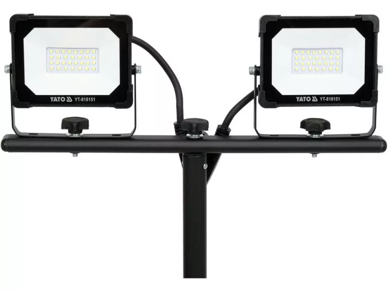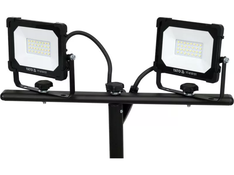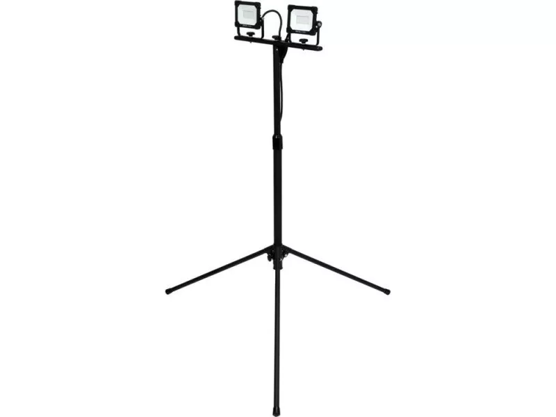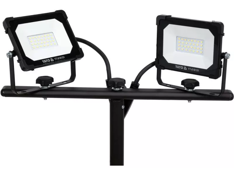 Two flat floodlights with efficient SMD LEDs placed on a stable, adjustable stand.