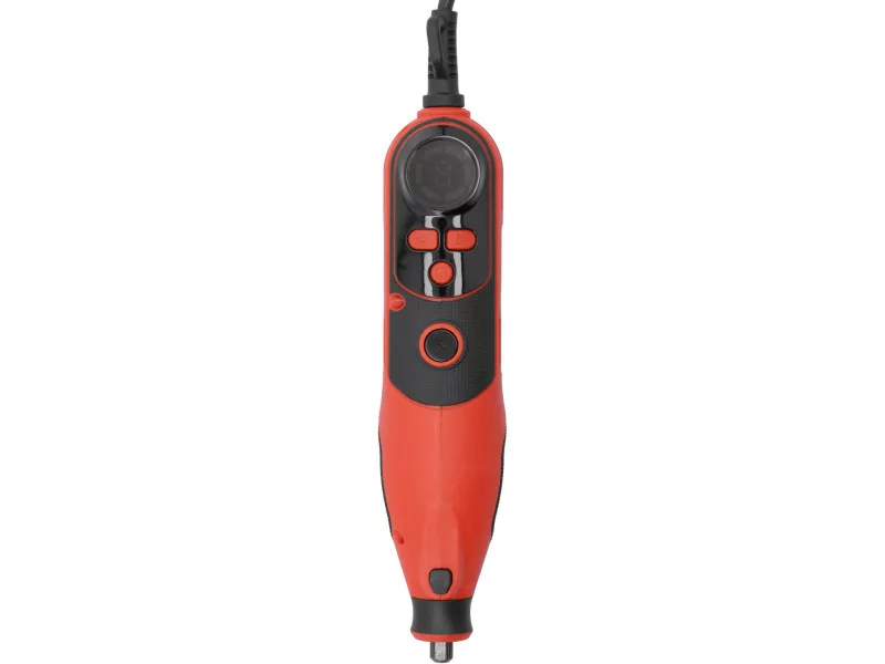 A handy mains-powered tool that allows precise machining of different materials. Used for drilling, grinding, milling, engraving, polishing, cleaning. It has six speed settings, from 10,000 to 35,000 rpm, allowing you to adapt the speed to suit specific tasks. The speed is electronically controlled. The toolholder is self-centring. LED lighting makes it easier to perform precision tasks. 130 Watt power. Included with the mini sander is an additional tool holder on a flexible boom, a spanner for the tool holder, a protective cover, a boom spindle lock, a router attachment and 82 abrasive accessories.
