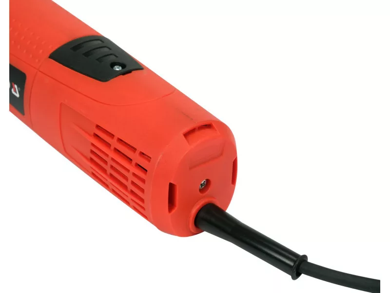The machine features a reinforced gearbox and a soft-start system that ensures the motor lasts longer. The powerful motor with copper winding is coated with resin to protect it from damage. The three-position auxiliary handle is screwed onto the side or top of the gearbox cover. The 3-metre rubber cable makes the grinder comfortable to use. The side switch is handy, durable and allows the grinder to be switched on easily even when wearing work gloves. The outer diameter of the housing is slim, allowing a safe secure grip and guiding the blade along the cutting line. The quick-change brush system allows replacement without dismantling the entire unit.
